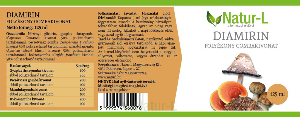 A Diamirin egy négyféle gyógygombát tartalmazó, koncentrált folyékony kivonat,